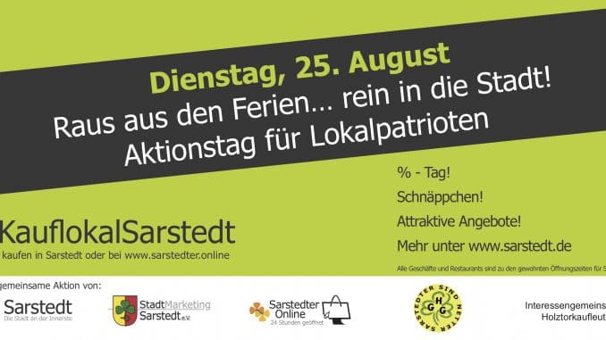 Der Aktionstag ist eine weitere Aktion im Rahmen der Einzelhandelskampagne #KauflokalSarstedt. „Gemeinsam wollen wir mit dem 2. Aktionstag Aufmerksamkeit für die Vielfalt in unserer Innenstadt schaffen“, so Andrea Satli, Stadtmanagerin. „Voraussichtlich am Donnerstag, 1. Oktober ist ein weiterer Aktionstag unter dem Motto „Late-Night-Shopping“ geplant,“ ergänzt Satli.
