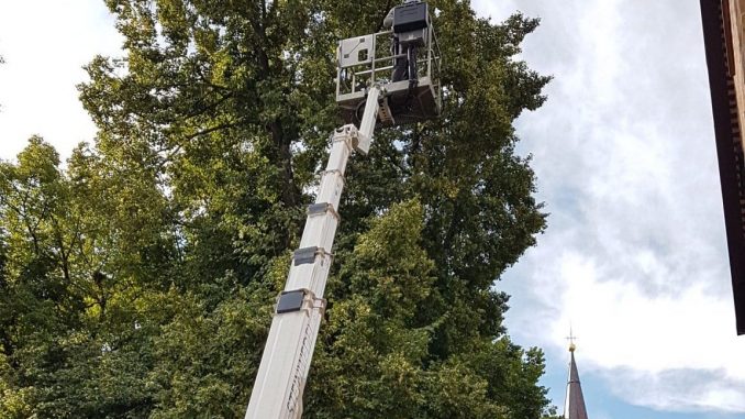 Die St. Nicolai-Gemeinde investiert dieser Tage wieder in die „Zukunft in Grün“. Im Frühjahr waren bereits fünf Eschen ersatzweise für die altersbedingt am Lappenberg gefällten Robinien gepflanzt worden, nun ging es zum Monatswechsel August/September um den Erhalt des alten Baumbestandes am Kirchplatz und im Pfarrgarten. Unter beträchtlichem Aufwand sorgt die Fa. Ginkgo von der Hildesheimer Lebenshilfe für eine umfassende Baumpflege. Durch die mehrjährige Unterversorgung mit Regenwasser bildete der Baumbestand viel Totholz. Auch Ungleichgewichte in Kronenbildungen und mögliche Rissbildungen wurden bearbeitet. Die St. Nicolai-Gemeinde hofft, auf diese Weise viel vom stadtbildprägenden und ökologisch wertvollen alten Baumbestand zu erhalten. /stb