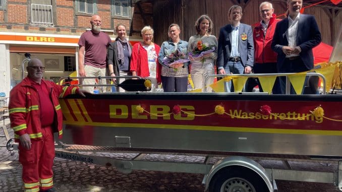Das Boot sei ein wichtiger Baustein für den Katastrophenschutz in Stadt und Landkreis, betonte auch Bürgermeisterin Heike Brennecke. Es funktioniere aber nur, wenn es Menschen gebe, die es führen. Daher dankte sie besonders den Ehrenamtlichen für ihren Einsatz für in Not geratene Menschen. Dem neuen Boot wünschte sie „gute Dienste aber wenige Einsätze und stets eine wohlbehaltene Rückkehr in den Heimathafen“. „Unseren Anteil am Boot über 15.250 Euro haben wir schon überwiesen“, merkte sie augenzwinkernd an.