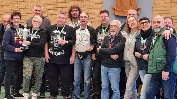 Hoch ging es schon her, als die letzten Nachzügler zur Siegerehrung des Ortspokales eintrafen. In guter Stimmung und gespannter Erwartung konnte dann der Vorsitzende des KKS Giften, Matthias Moock, die Anwesenden begrüßen. Zunächst wurde noch Kerstin Wilk nachträglich für ihre langjährige Mitgliedschaft im KKS Giften geehrt und mit der Vereinsmeisternadel geschmückt, da sie bei der eigentlichen Ehrung nicht anwesend war.