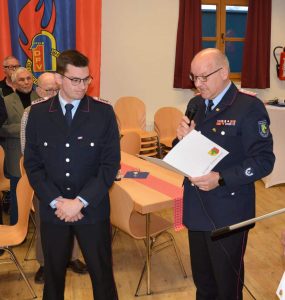 Auch einen Wechsel im Kommando gab Graf bekannt: Thomas Klug übergab zum 1. Januar seinen Posten als Gerätewart an Sven Kubitzke und Alexander Holten übernimmt die Jugendfeuerwehr und tauscht somit den Posten mit seinem jetzigen Stellvertreter Daniel Elpel, der aus privaten Gründen in die zweite Reihe rutscht.