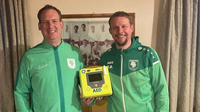 Je früher ein Patient mit Herzstillstand Hilfe erhält, desto besser sind seine Überlebenschancen. Sogenannte Automatisierte Externe Defibrillatoren (AED) können das Herzkammerflimmern erkennen – und von Ersthelfenden auch ohne medizinische Vorkenntnisse eingesetzt werden. Das Gerät im Sportheim des TV Deutsche Eiche Hotteln hängt direkt im Eingangsbereich. Dort ist es bei Notfällen erreichbar. „Jeder kann den Defibrillator am Patienten anbringen. Dafür gibt es eine akustische Anleitung. Der Helfer kann damit keinen Fehler machen“, betonte Michael Maspohl, 1.Vorsitzender des TV Deutsche Eiche Hotteln.