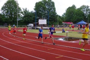 Als einziger Athlet von der FSV Sarstedt ging Niclas Legler (M15) über die 1.500-Meter-Hindernisstrecke an den Start. Kurz vor dem Startschuss begann es in der Ferne zu donnern, aber zum Glück blieb es während des Laufes noch trocken. In der ersten Runde blieb das zehnköpfige Läuferfeld noch dicht beisammen, als in der zweiten Runde jedoch die Hindernisse dazu kamen, setzte sich vorne eine Vierergruppe ab. Niclas Legler ging das Rennen schnell an, wurde aber im Rennverlauf etwas langsamer. Die Hindernisüberquerung gelang ihm dabei sicher und auch der ungewohnte Wassergraben stellte kein Problem dar. So erreichte er als Siebter der Norddeutschen Meisterschaften und als Fünfter der Landesmeisterschaften in neuer persönlicher Bestleistung und mit Vereinsrekord in einer Zeit von 5:10,85 Minuten das Ziel.