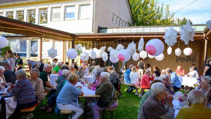 Weiße Tischdecken flatterten in der Morgensonne, als sich am Samstag, dem 21. September, bereits ab 09.30 Uhr die Tische mit knapp 100 Gästen zum Bürgerfrühstück im Sarstedter Giebelstieg füllten, bei dem alle Gäste ihre mitgebrachten Frühstückszutaten untereinander austauschten. Das Orga-Team hatte besonderes Augenmerk auf Atmosphäre gelegt und mit blumiger Tischdeko und unzähligen Lampions im Innenhof geschmückt.