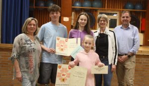 Zunächst wurde eine Gruppe für ihr besonderes ehrenamtliches Engagement geehrt. Die fünf Jugendlichen Finja Lange, Jonathan Geisler, Emma Kuhnert, Annemieke Schütze und Dominik Hertel bilden das J-Team (J = Jugendliche) in der Judo-Abteilung. Die Idee hierzu entstand bereits vor sechs Jahren. Der Judo-Abteilungsleiter, Christian Schütze, hatte die Jugendlichen zu einem Wochenende in Clausthal-Zellerfeld eingeladen, einmal zum Dank für ihre bisherigen Einsätze in der Judoabteilung und zum anderen, um gemeinsam konkrete Projekte auszuarbeiten, die sie als J-Team in eigener Verantwortung organisieren und durchführen sollen. Heute ist dieses Team in der Tat nicht mehr wegzudenken. Die verantwortlichen Jugendlichen haben in den vergangenen Jahren Sommerfeste, Weihnachtsfeiern, Kinderdisco und Hallenübernachtungen organisiert und kümmern sich stets um die inhaltliche Gestaltung der Pfingst- und Winterfreizeiten.