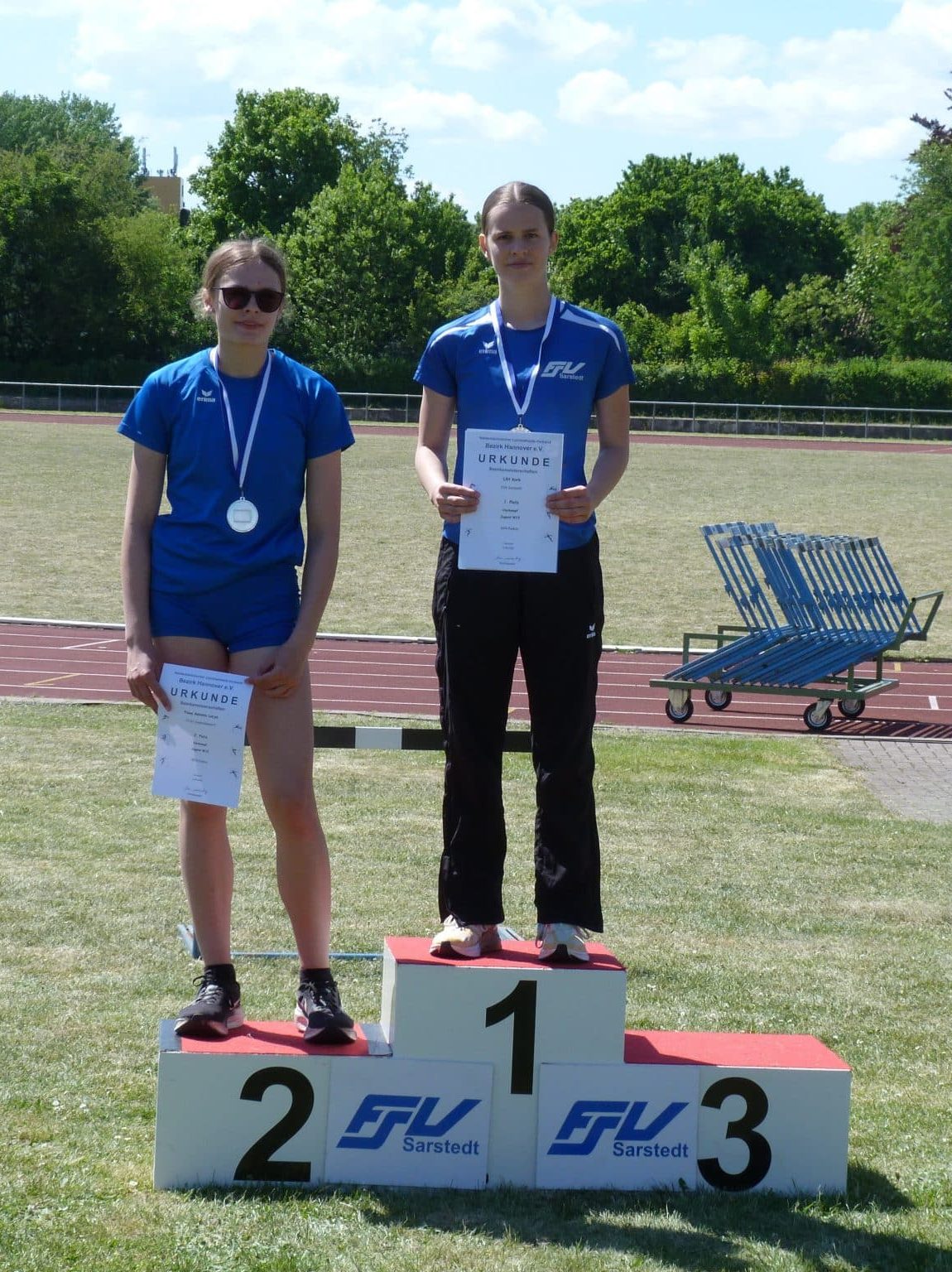 Die Bezirksmeisterschaften wurden im Vierkampf der Altersklassen U16 und U14 ausgerichtet. Beide Sarstedter Vereine konnten dabei tolle Erfolge feiern. Bei den Jugendlichen der Altersklasse M15 erreichten Armin Kollmeyer und Oscar Eckstein vom TKJ mit neuen persönlichen Bestleistungen die Plätze 2 und 3. Sie wurden damit zugleich Kreismeister und Vizekreismeister und konnten sich über eine doppelte Auszeichnung freuen. Lilit Korb von der FSV wurde mit neuen persönlichen Bestleistungen in der W15 Bezirks- und Kreismeisterin im Vierkampf. Das wäre Maximilian Maiwald (TKJ) auch fast gelungen. Am Ende musste er sich um acht Punkte geschlagen geben und erreichte in der Altersklasse M14 den zweiten Platz.