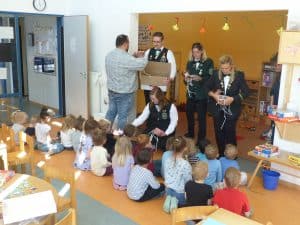 Für die Kleinsten in der Kita, die 15 Krippenkinder, gab es statt Lebkuchen Pixi-Büchlein. „Gleich vorlesen!“, hörten die Erzieherinnen umgehend, nachdem die Schützenabordnung wieder aus dem Raum der Mäuse-Gruppe war.