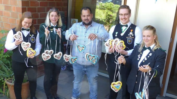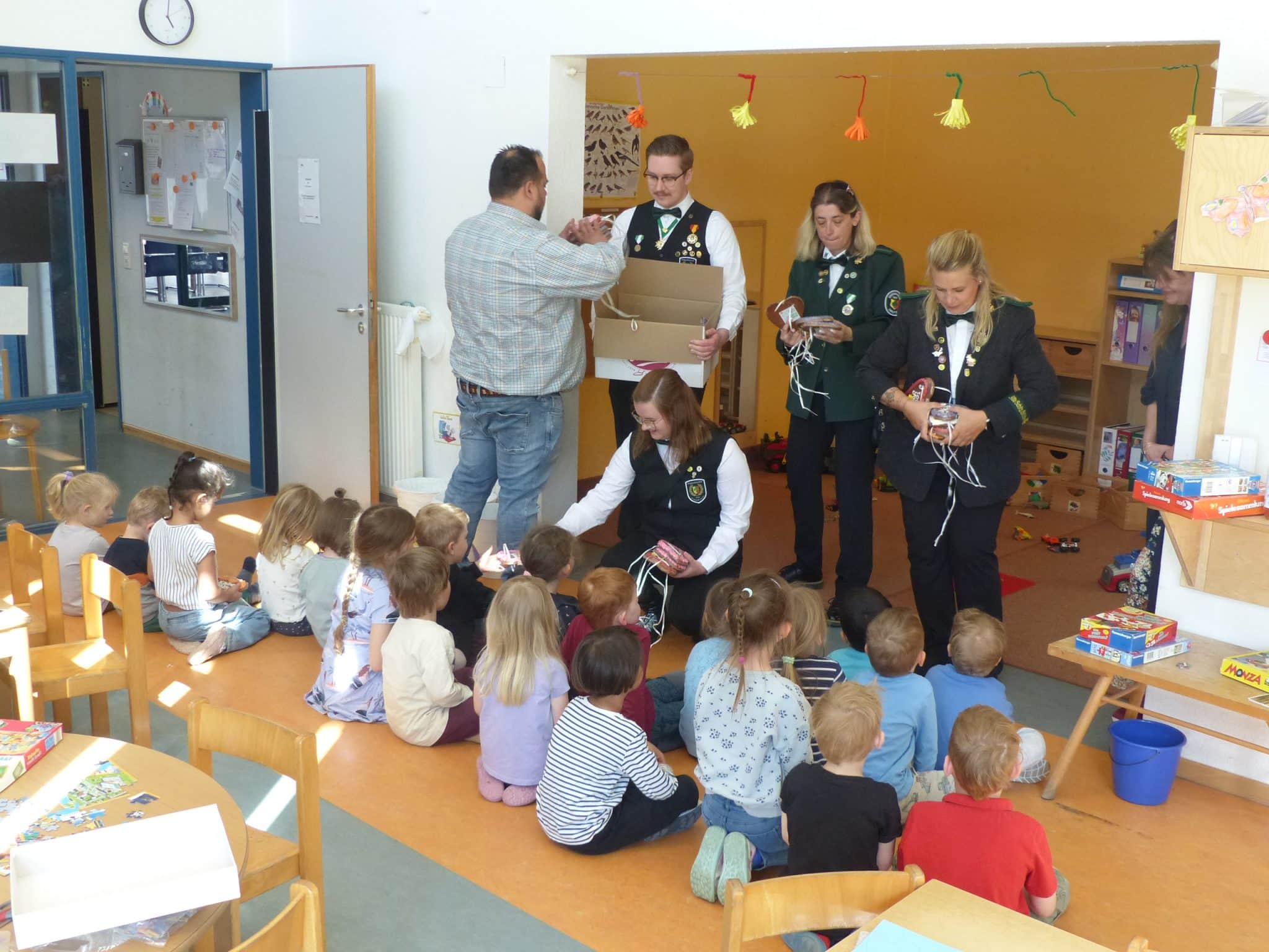 Für die Kleinsten in der Kita, die 15 Krippenkinder, gab es statt Lebkuchen Pixi-Büchlein. „Gleich vorlesen!“, hörten die Erzieherinnen umgehend, nachdem die Schützenabordnung wieder aus dem Raum der Mäuse-Gruppe war.