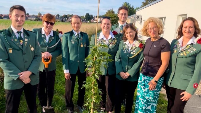 Am Freitag, dem 15. August, trafen sich zahlreiche Vereinsmitglieder am Schützenhaus in Gleidingen, um gemeinsam einen Baum einzupflanzen. Gespendet wurde dieser von der amtierenden Bürgerkönigin Silke Schönecke. Den Baum selbst erwarb der Verein zusammen mit Schönecke bei der Baumschule Stenzig in Heisede, die eine Vielzahl an Bäumen im Angebot hat. „Wir möchten zeigen, dass wir als Verein nicht nur Tradition leben, sondern auch Verantwortung für unsere Umwelt übernehmen“, erklärten die Mitglieder des Schützenvereins.