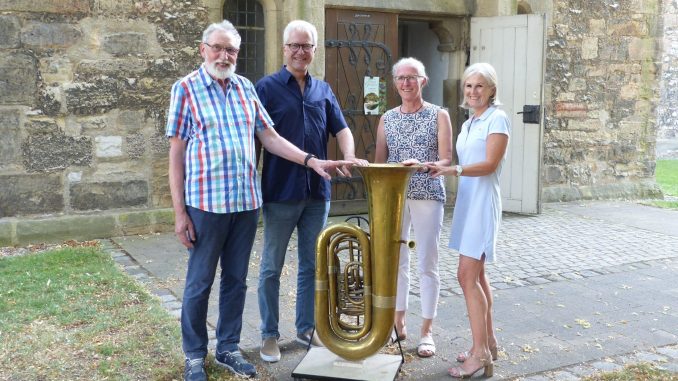 Seit 2007 steht die große Spendentuba einmal jährlich vor der Kirchentür und lädt dazu ein, Spenden in ihren Trichter zu werfen. Erst dreimal habe die musikalisch-kulinarische Sause ausfallen müssen, Corona geschuldet in den Jahren 2020, 2021 und 2022, berichtet Annett Gittermann, die den Abend der Genüsse seit vielen Jahren federführend verantwortet.