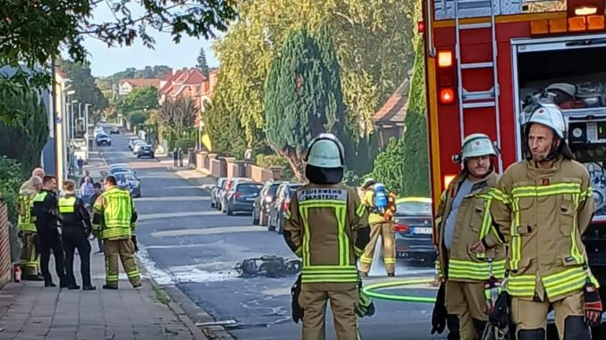 Laut Auskunft der Polizei Sarstedt befuhr ein Jugendlicher mit seinem Motorroller am vergangenen Sonntag, dem 28.09.2025, um 16.41 Uhr den Sarstedter Wellweg in Richtung Friedrich-Ebert-Straße. Da dieser sein Fahrzeug kurz zuvor aufgetankt und dabei den Tank zu sehr gefüllt hatte, tropfte Treibstoff aus dem überfüllten Tank auf den heißen Auspuff und setzte dadurch den Roller in Brand. Dem Jugendlichen gelang es noch rechtzeitig, von der Maschine abzusteigen, bevor diese komplett in Flammen stand.