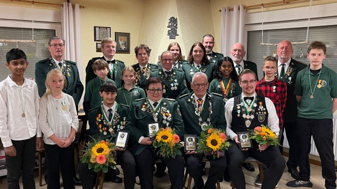 Nach der Ehrung aller Königinnen und Könige sowie Prinzessinnen und Prinzen stärkten sich alle Anwesenden bei einem zünftigen Essen und frönten im Schützenhaus ausgiebig der Geselligkeit.