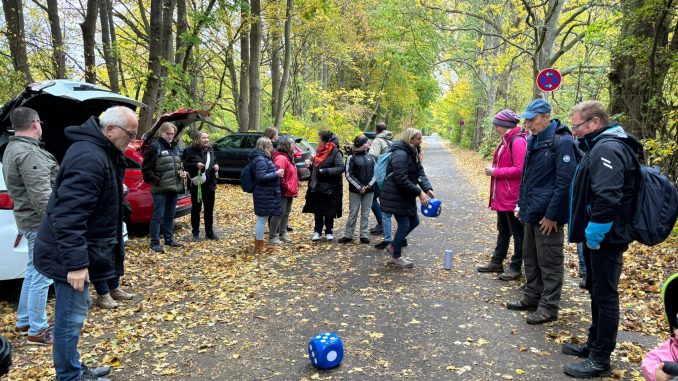 Kürzlich hieß es „Auf zum Wandern!“. Vom Parkplatz an der Laatzener Brücke in der Talstraße ging es über die Leinerandstraße und den Spielplatz am Vereinsheim des VfL Grasdorf vorbei, zum Wasserwerk und über den Aussichtsturm in Richtung Wiesendachhaus, wo es für alle ein deftiges Grünkohlessen gab. Unterwegs hielten zahlreiche Spiele die Gruppe bei Laune: ob mit einem Würfel einen Korb treffen, Ringe werfen oder auch Bälle auffangen – bei dem Rundgang durch die Masch ging es allerorts lustig zu. Dazu wurde natürlich auch so manches Kaltgetränk sowie süße Leckereien gereicht, die die gutgelaunte Truppe von mehr als 20 Mitgliedern unterwegs stärkte.