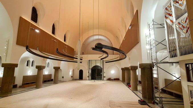 Nun geht es in den Endspurt. Die Orgel muss noch fertig installiert und neu gestimmt werden, Altar, Ambo und Stühle werden Mitte November geliefert, auch die Heiligenfiguren kehren dann zurück. Am kommenden Christkönigssonntag wird Bischof Heiner Wilmer in einer Heiligen Messe den neuen Altar weihen, dann ist die Kirche wieder eröffnet und wird mit neuem Leben gefüllt werden.