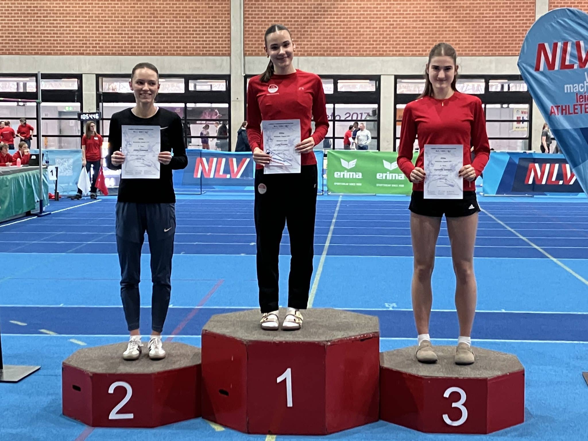 Herausragende Athletin war Charlotte Schwabe. Startberechtigt in der Altersklasse U18 trat sie am Wochenende gegen die bis zu drei Jahre ältere Konkurrenz in der U20 an. Im Vorlauf über 60 Meter verbesserte sich Charlotte im Vergleich zum Vorjahr um 35 Hundertstel auf 7,80 Sekunden – auf der kurzen Distanz ein riesiger Sprung. Mit 7,84 Sekunden im Zwischenlauf qualifizierte sich die 15-Jährige für das Finale. In diesem verbesserte sie ihren Hausrekord noch einmal auf 7,77 Sekunden – Platz fünf in Niedersachsen und die Qualifikation für die Deutschen Jugendmeisterschaften der U20 im Februar.