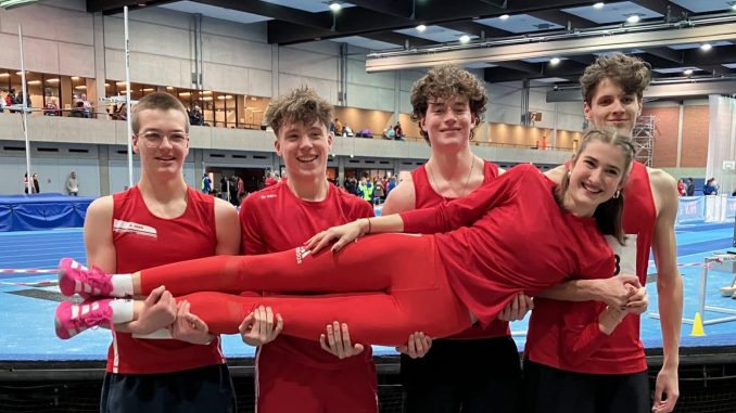 Ebenfalls auf der 4×200-Meter-Strecke unterwegs waren Oskar Eckstein, Luca Willig, Nils Passow und Simon Quaedvlieg. Die vier jungen TKJ-ler traten in dieser Formation erstmals in der Männerklasse an und verkauften sich als eigentliche U20- bzw. U18-Athleten bei den Männern richtig gut. Mit einer tollen Zeit von 1:37,35 Minuten erreichte ihr Staffelstab nach vier Hallenbahnrunden das Ziel. Sie verbesserten hiermit den 57 Jahre alten Vereinsrekord um über drei Sekunden und wurden Sechste. Auch in verschiedenen Einzeldisziplinen gingen alle Staffelläufer an den Start: Simon Quaedvlieg verpasste hierbei im Hochsprung als Vierter mit 1,83 Metern knapp einen Medaillenrang. Dies gelang dafür Nils Passow auf der 400-Meter-Strecke, der sich in guten 52,67 Sekunden Platz drei sicherte. Mit einer neuen Bestweite von 6,36 Metern und ebenfalls Platz drei nahm auch für Luca Willig die Hallensaison ein versöhnliches, positives Ende.
