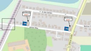 Die Parkplätze im oberen Bereich der Kiefernstraße werden mit mobilen Halteverboten während der Bauphase gesperrt, ausgenommen sind die E-Ladeplätze und der Behinderten-Parkplatz.